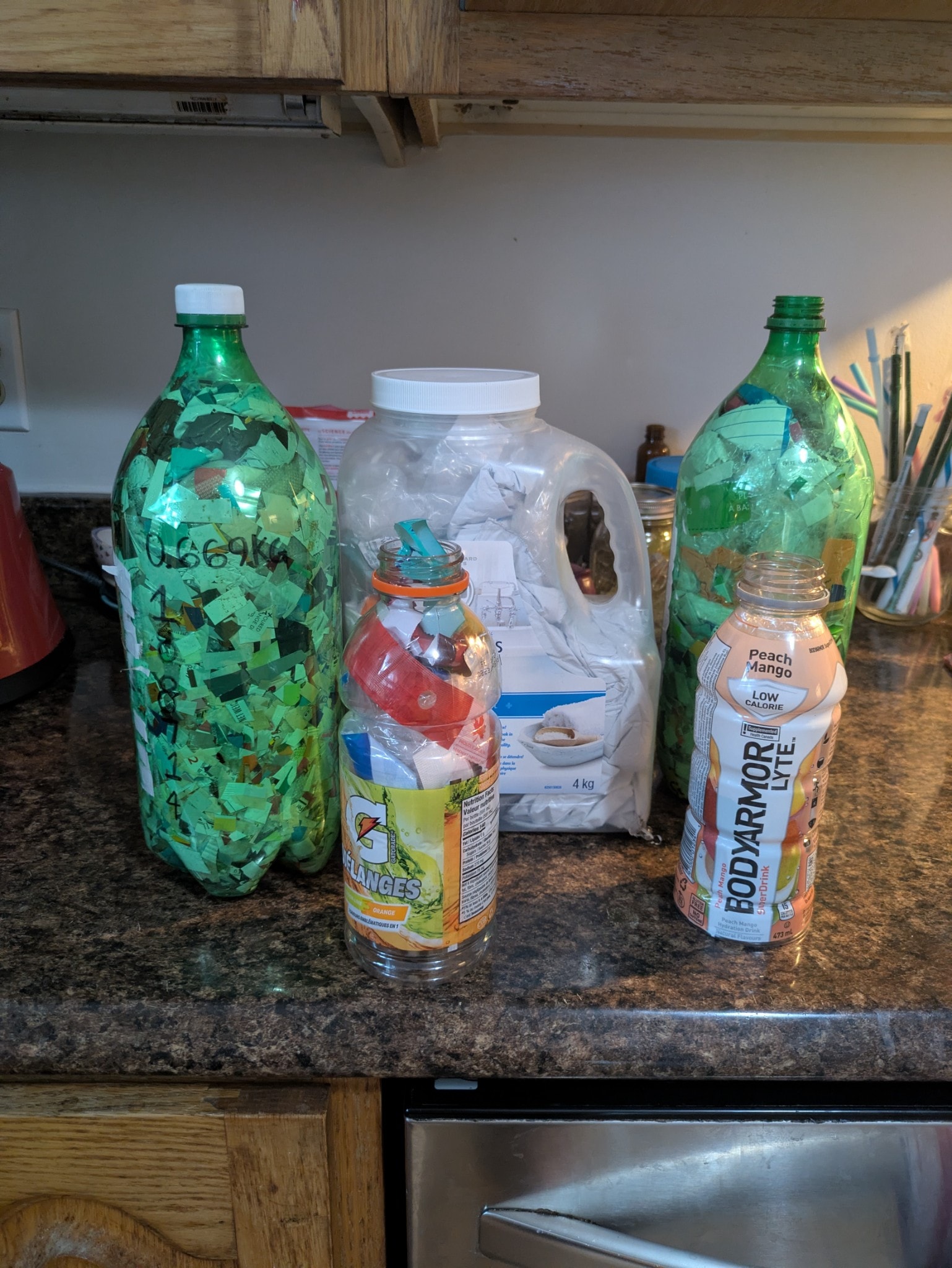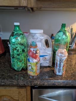 I was rounding up my eco bricks and thought I should show the different sizes, I recommend a wide mouth container. There is a site for auctioning them off, but if you don't want to put in the work of compressing it, just adding clean plastic to bottles helps shrink it's footprint ecobricks.org